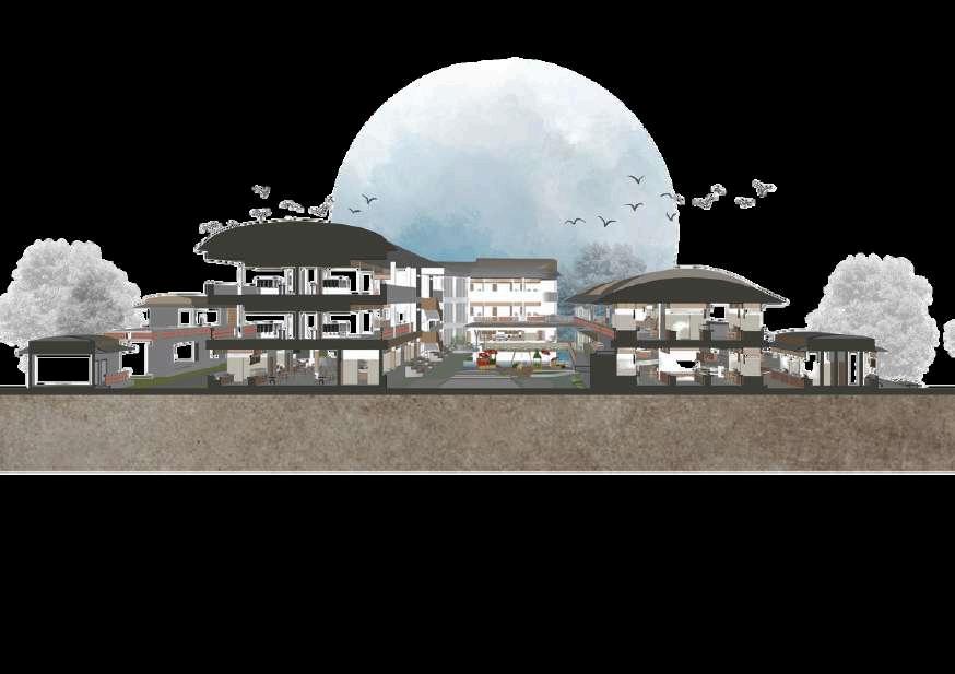 Agrapana, a Co-Working Library located in the heart of the city, responds to the demand for knowledgeenhancing facilities in a student-centered environment. Designed around collaboration, it aims to foster positive societal interaction and support individual growth. Its name, meaning "source of life," reflects its mission to apply science as the foundation of existence. The architecture of Agrapana emphasizes an environment conducive to collaboration and personal development, making it a valuable resource for enriching society
