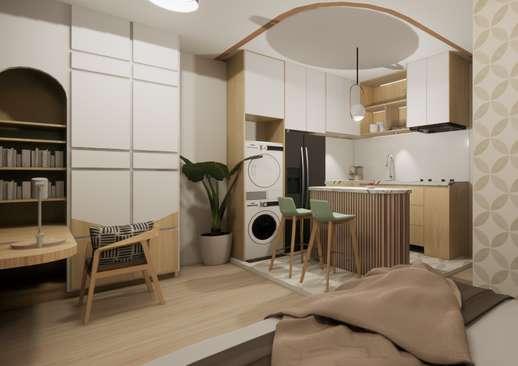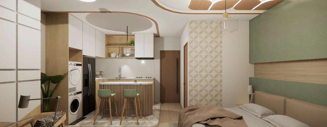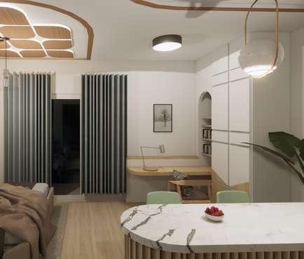 This one-bedroom apartment interior embraces the Eco-Culture concept, blending sustainable design with local cultural elements. The space integrates ornamental plants, energyefficient features, and ecofriendly materials, while cultural identity is reflected through curated traditional ornaments The design aims to deliver visual comfort and promote environmental harmony, supporting a lifestyle rooted in sustainability and local wisdom.30 m²