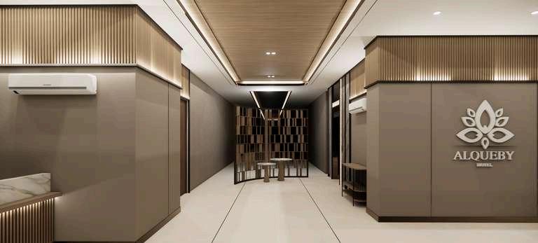 At Planarc Design, I contributed to the renovation of Alqueby Hotel's lobby by developing the concept, producing detailed drawings, selecting materials, and creating 3D renderings. Responding to the client’s need for a more inviting and refined space, the design adopts a modern natural elegance concept blending warm wood, white marble with gold veining, and ambient lighting to create a luxurious yet welcoming atmosphere