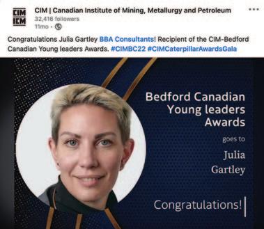 I would like to express my personal thanks to CIM President Anne Marie Toutant and Immediate Past President Pierre Julien, the full CIM Council, our numerous Society, Branch and Committee executives, and all of our incredible volunteers and members throughout the OneCIM community. Your support and trust in our CIM central office team has been essential to our ongoing success. And my heartfelt appreciation to the CIM central office team – your passion and commitment to our organization and our industry continues to inspire me.