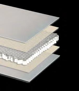 B = STRUCTURAL ADHESIVE C = SKIN IN RAW ALUMINIUM Thickness starting from 0.5 mm D = ALUMINIUM HONEYCOMB CORE