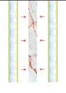 CEL‘s lightweight sandwich panels with honeycomb cores faced with various sheets of fibreglass impregnated with epoxy or phenolic resin (Step-Series) are used to reinforce marble and semi-precious stones. By applying the panels to natural stones, the thickness of the slabs can be halved, greatly reducing the material weight and cost. This application is not only limited to marble and precious stones, but it can be also used with any natural or engineered stone or porcelain material.