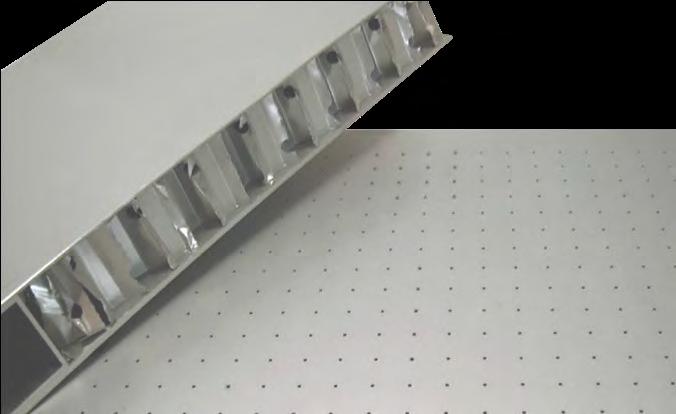 The 3000 aluminium series, available in 3 and 6 mm diameter hexagonal cells with anti-corrosion treatment and with thicknesses is the most suitable element for laser cutting working tables.