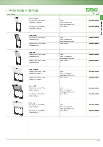 FRONT PANEL INTERFACES Art-No. 1-way transparent Mounting frame plastic PBT black Lid plastic PC transparent Mounting frame plastic PBT black Lid plastic PC transparent