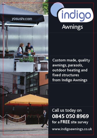 Call usparasols, today on awnings, outdoor heating and fixed structures for aIndigo site18/09/2009 survey 10 Caterer & Hotelkeeper Directory 60x60_v2.indd 1 Awnings from