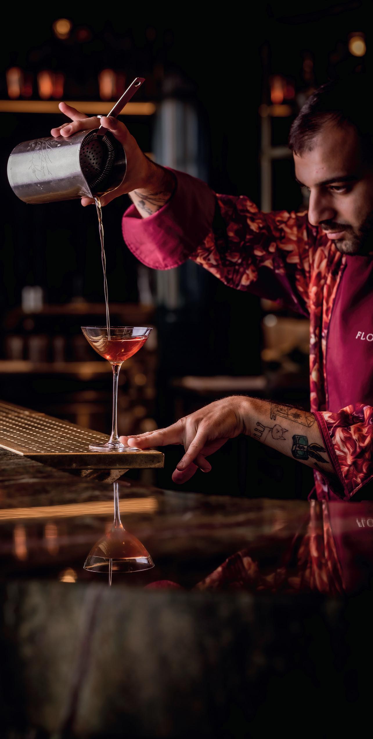 Our team is made up of dedicated and talented mixologists who take pride in their craft. Every cocktail is designed with precision, balancing classic foundations with innovative twists. Whether through subtle smoke infusions, unexpected flavour pairings or elegant presentation, we aim to create enjoyable and memorable drinks that reflect the five-star venue.