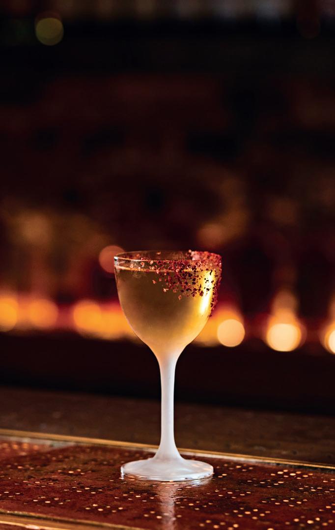 And lastly, our Sønday Evening, THE KABIN cocktail (because nothing is cozier than a Sunday evening in a cabin), is garnished with Sunday Morning oil - an MCT oil infused with high-quality coffee beans, cinnamon and vanilla that’s both edible and wearable. As we garnish the martini tableside, we offer a few drops on the wrist so that guests can build a new olfactorydriven memory here with us, rooted in their Sunday nostalgia. These cocktails are made and presented in smart, nuanced ways that prompt connection, often laughter, and sometimes a good chug.