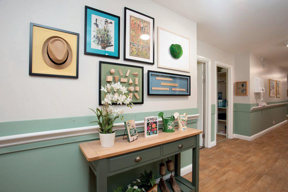 The Hallways were decorated with bespoke artwork, positioned at key points, such as the crossroads near the nurse station, to provide visual cues for navigation. It was particularly nice to note how the local area inspired this artwork, allowing residents to recognise specific pieces of art and associate them with places they had visited.