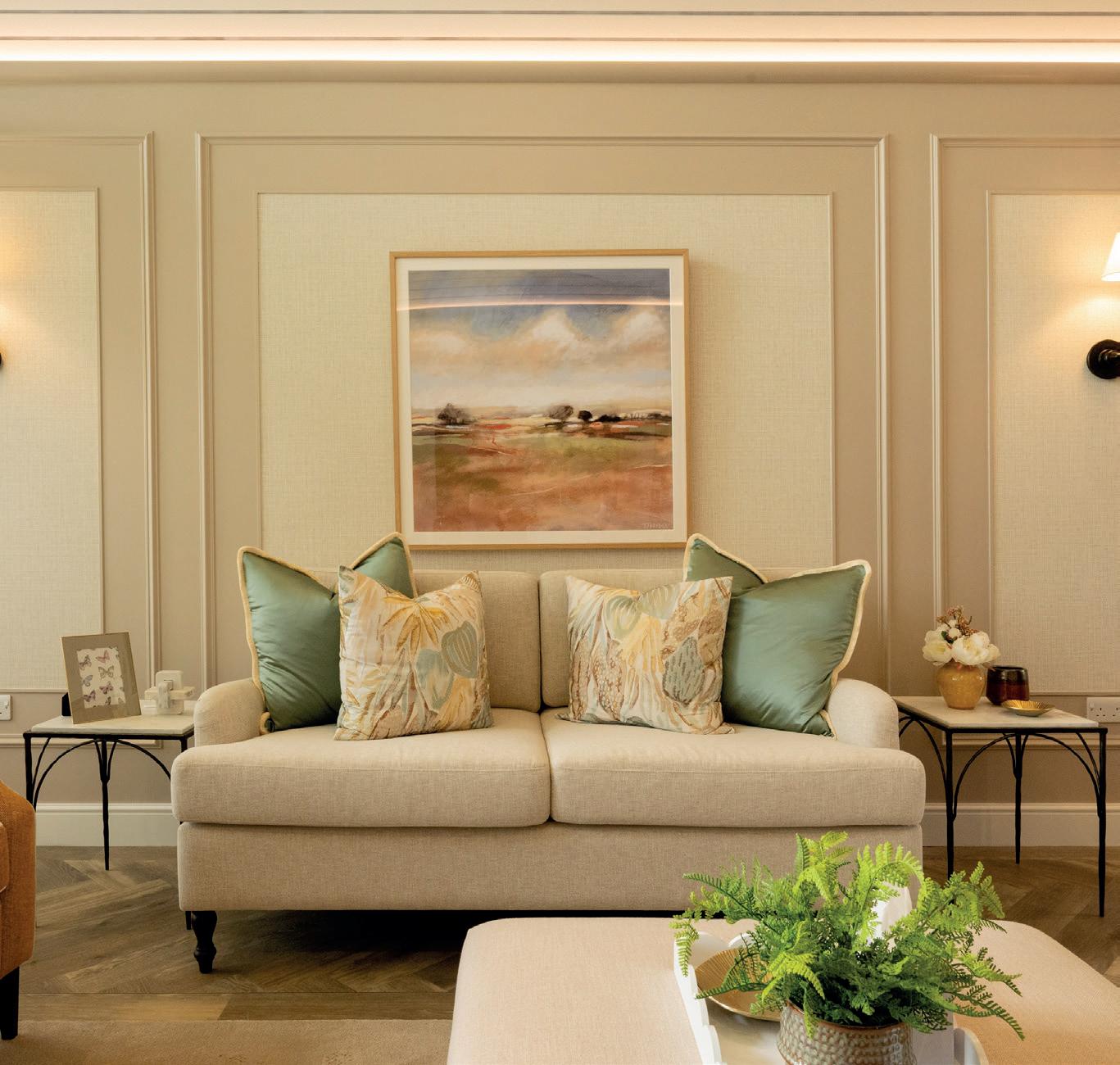 with elegant designs which didn’t detract from the homely feel of each room. Embedded within the interior design were practical features such as handrails, which blended into the wall panelling to provide functionality without making the space feel clinical.