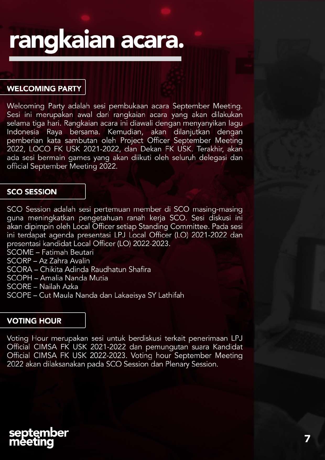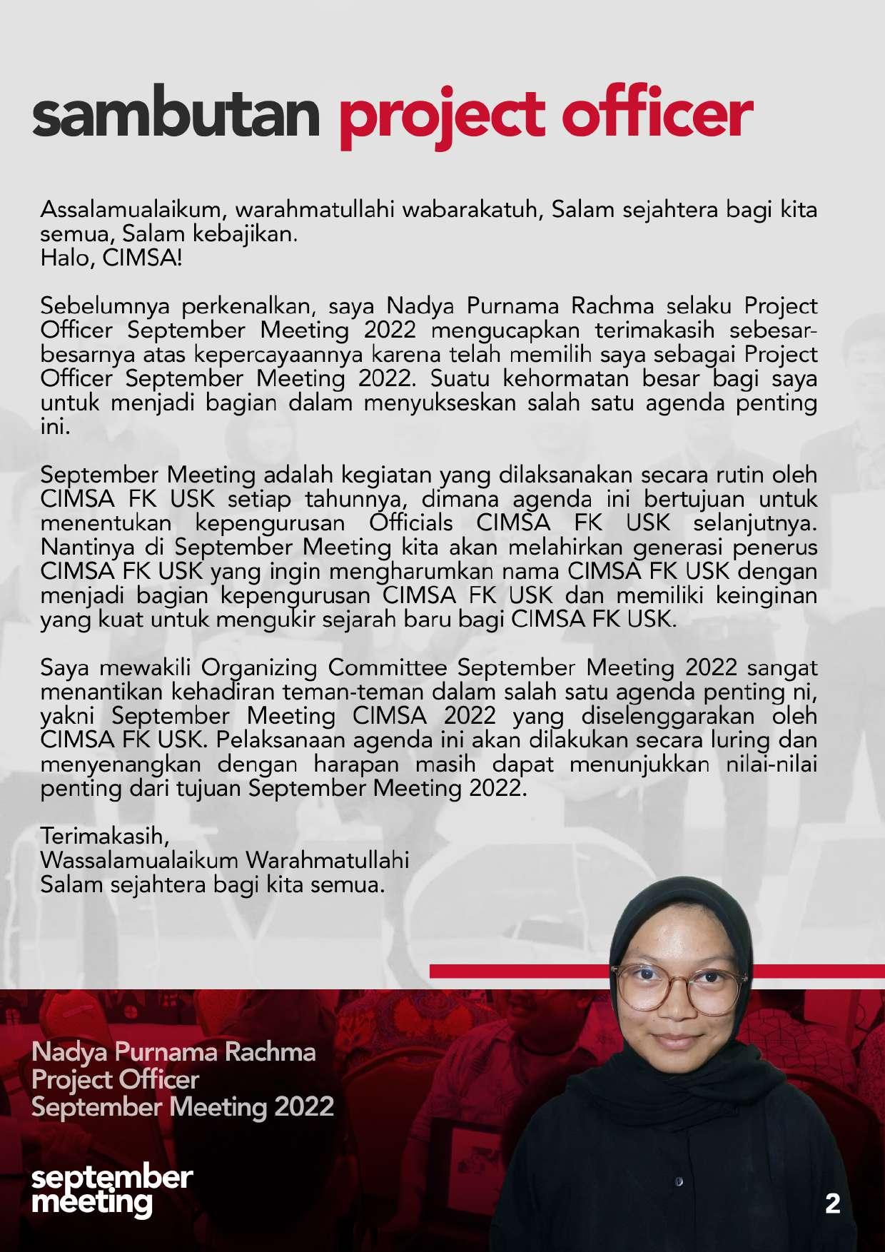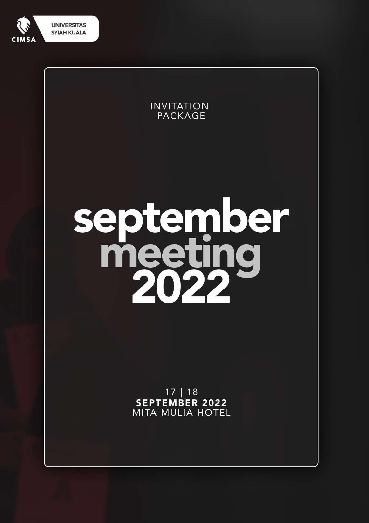 September Meeting 2022 terbuka untuk seluruh member, senior dan alumni CIMSA FK USK. Untuk bergabung, lakukan registrasi melalui link berikut: https://bit.ly/SM22REGIST