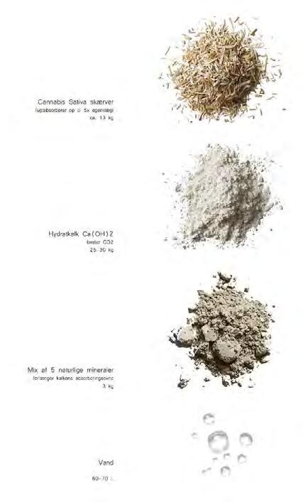 Havnens Hænder. U.å. ”Græs” https://havnens-h.dk/materialer/graes/ Havnens Hænder. U.å. ”Hempcrete” https://havnens-h.dk/materialer/hempcrete/ Havnens Hænder. U.å. ”Lerplade med hampskærver” https://havnens-h.dk/materialer/ler-med-hamp/ Healthy Material Lab, Parsons School of Design. U.å. “PA Hemp Home – Case Study and Lessons Learned” https://issuu.com/healthymaterialslab/docs/2023.08.07_pa_hemp_home_case_study Johansen, Bjarne Lund. 2014. Træ 69 Træarter. Træinformation.
