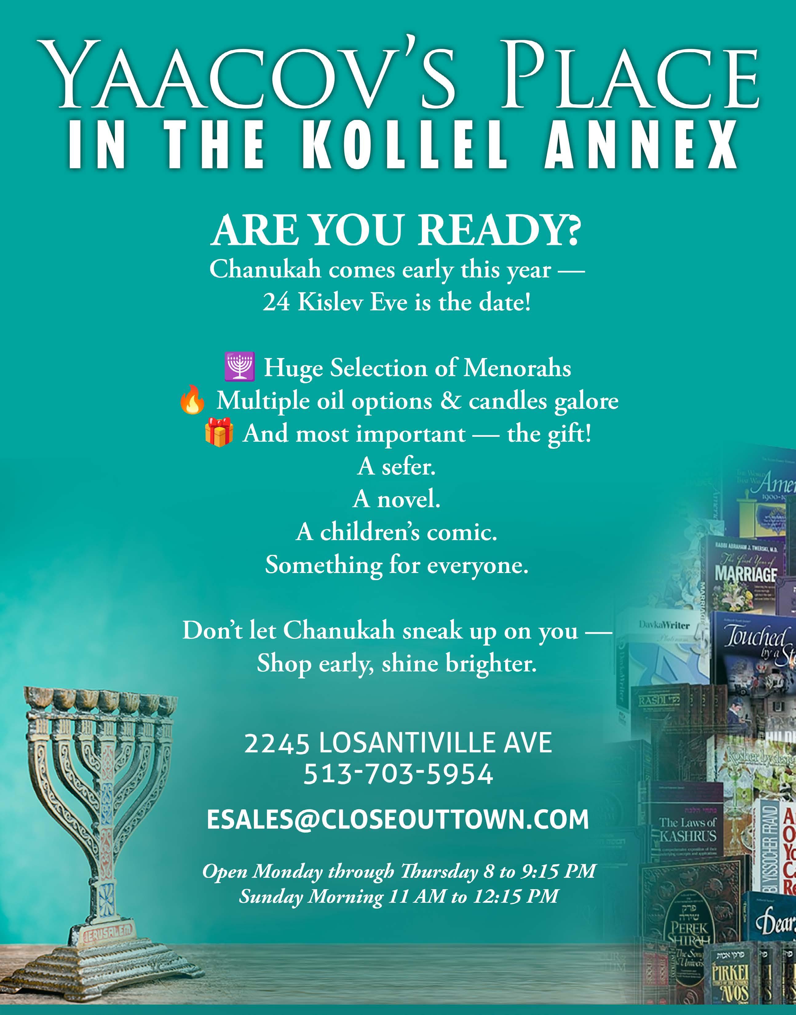 As winter settles in Cincinnati, with the daytime growing shorter and the nighttime getting longer, the lights blaze in the Mesivta of Cincinnati from the early hours of the morning until late at night. Well before Shachris, the Kochvei Boker shiur, led by Rabbi Moshe Ganz, has already completed the sefer Shaarim Bteffila, written by Harav Shimshon Pinkus ZTL. Attended by a large number of bochurim, the shiur has greatly enhanced the appreciation and seriousness with which the bochurim approach davening, and it has noticeably impacted the overall davening in the Mesivta.