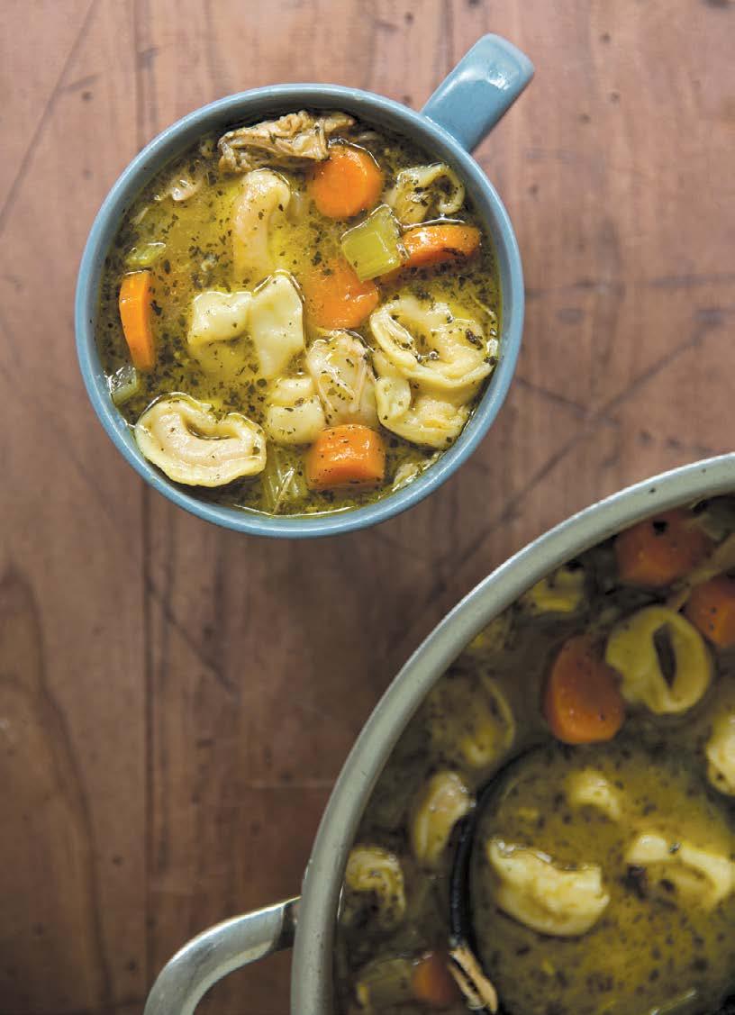 Add broth to the soup. Make sure when adding the broth you add only until an inch below the top of the vegetable line to make sure the soup is not too watery Bring to a boil, then lower to simmer for an hour.