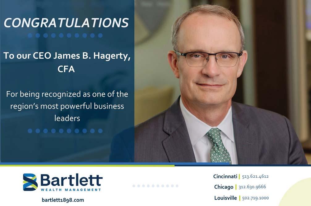 Hagerty, who joined Bartlett in 1994, leads the management committee and is responsible for the firm’s strategy. President Holly Mazzocca leads daily operations and the company’s managing directors. Bartlett is the ninth-largest money management firm in Cincinnati with $6.35 billion in local assets managed. Founded in 1898, it also has offices in Chicago and Louisville.