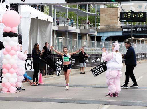 EVERY SPRING, PRETTY IN PINK TAKES ON A new meaning for thousands of runners, volunteers, and spectators as the Flying Pig Marathon weekend takes