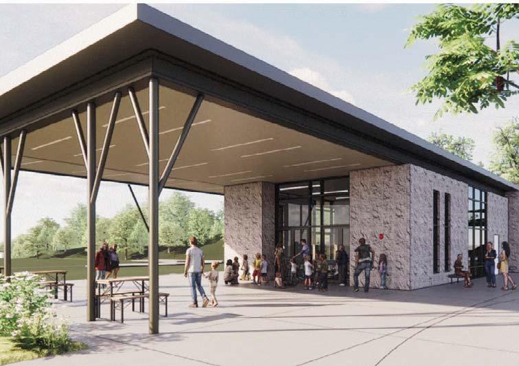Also new to the park are two tennis and six pickleball courts that are multi-use. Those courts are located conveniently near parking and the new four-season community room that has a canopy and plenty of outdoor gathering space. The new event lawn is just nearby, ready for summer events, and speaking of summer events, there’s an expanded space for the farmers’ market.