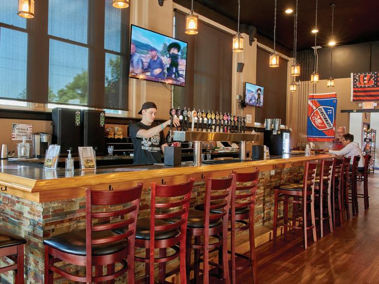 Head Brewer Sean Smith manages the company’s 20-barrel brewing system, along with a second system for small batch brews, which are in Batavia. The taproom has 18 craft taps and serves Bad Tom Smith Breathitt County & Cheating the Gallows Straight Bourbon, along with a line of craft cocktails. Located in an old bank building, the space can seat more than 100 guests.