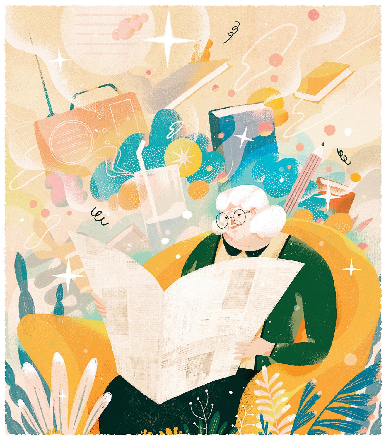 daily paper every day. She may not want to read it digitally, but she’s not fi ghting the modern world. She’s eager to participate in conversations about culture and politics, not group, I’m often the oldest person. I didn’t expect this when I joined with some neighbors a little over a year ago to read books and have honest conversations about racism, ableism, sexism, LGBTQ issues, and other equity topics. I didn’t even notice the age gap in the fi rst few meetings—we were meeting via Zoom, after all. It wasn’t until we were able to start gathering in person that I looked around one night and thought, Oh, this is new. I might be the oldest one here.