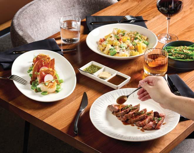 The stars of the menu are 12 delectable steaks that could sway the vegi-curious to recommit. Not sure which to choose? If you prefer brawny flavor over buttery texture, go for one of the three bone-in rib cuts. Or if it’s that meltin-your-mouth experience that raises your serotonin levels, C&J features several tenderloin cuts, including the premium six-ounce Wagyu filet. There are the usual suspects of raw bar, seafood, pork chops, et al, if you’re interested in nonbeef alternatives.