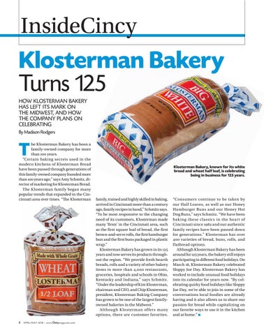 Klosterman Bakery Turns 125 HOW KLOSTERMAN BAKERY HAS LEFT ITS MARK ON THE MIDWEST, AND HOW THE COMPANY PLANS ON CELEBRATING By Madison Rodgers