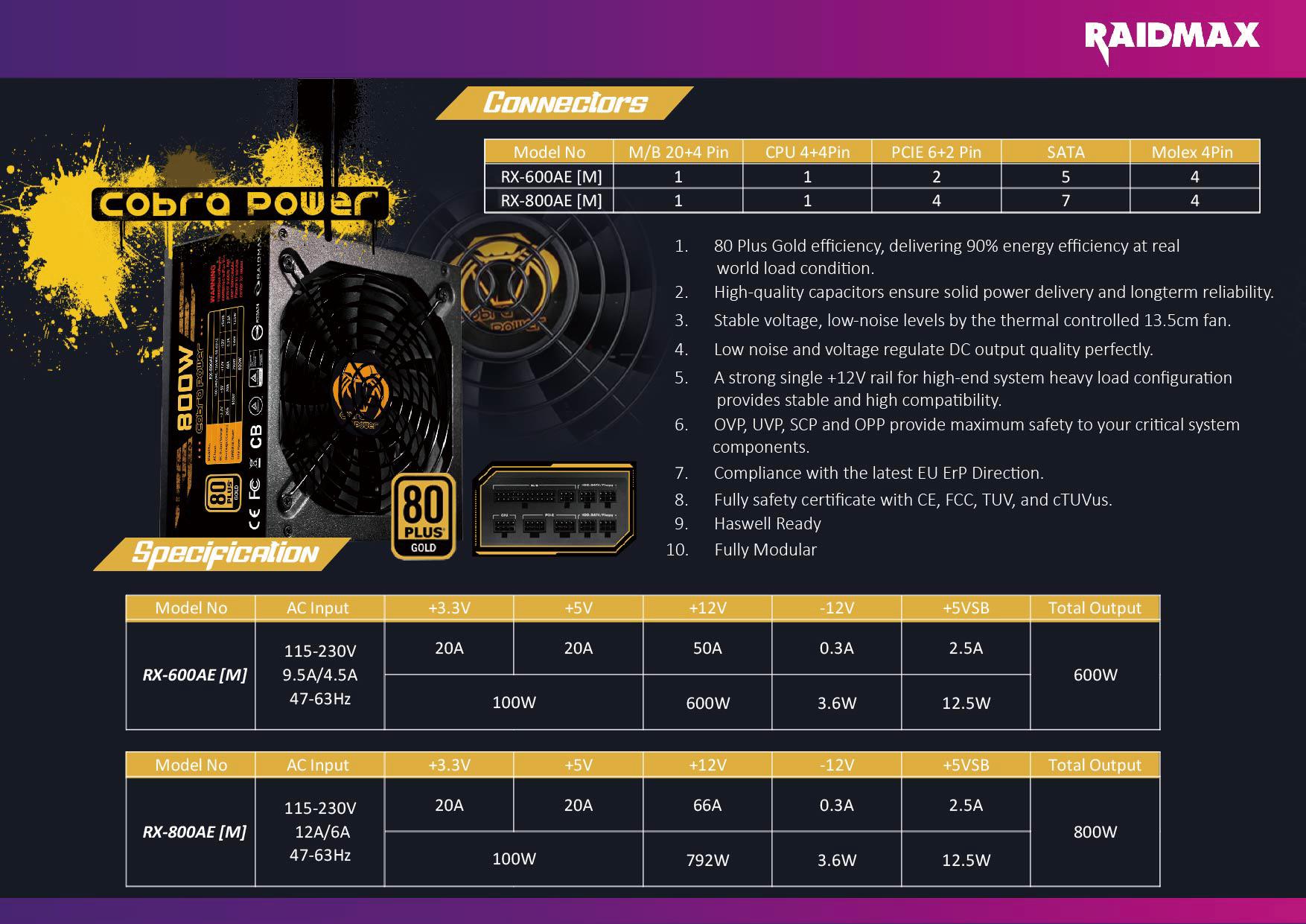 1. Powerful single +12V rail output helps ensure a stable and reliable supply to other PC components and also supports for higher power usage.