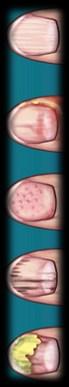 changes in nail thickness (thickening or thinning) nails that become brittle nails that are pitted