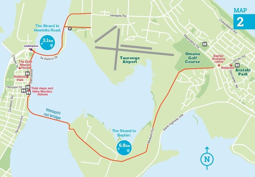 The Tauranga CBD is notable for its historical points of interest. Walk along The Strand and dip your toes in the water at the tidal steps, or visit one of the restaurants and bars that dot the waterfront. Take a look at the Elms Mission House, the oldest building in Tauranga, or walk up to Robbins Park to view the rose garden and tropical display house There are walking and cycling paths across the harbour bridge to Mount Maunganui, and a rail bridge to Matapihi.