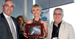 La entrega del galardón corresponde a Lara Pérez Camiña, presidenta de ADICINE, mientras que en nombre de la distribuidora sube al escenario Ignacio Segura CEO de DeAPlaneta para recoger el premio.