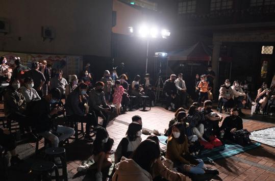 播映會於2021年11月27日在台南愛國婦人館舉辦,活 動開始由精彩的吉他伴奏演場,演唱歌手蔡秉佑、 曾韋翰、郭于齊,優美的歌聲中揭開序幕。今年邀 請到專業劇作家陸昕慈老師主持活動。 The
