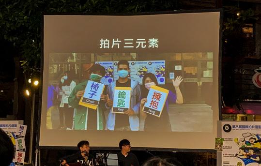 興創作,製作一部短片包含同樣的“三項元素”。 最後的影片必須短於三分鐘,並且包含拍片當日所宣 布的三項元素。完成挑戰的作品部份將入選於臺灣台 南愛國婦人館廣場播出。 三項元素為: 鑰匙 椅子 擁抱 第八屆國際拍片運動,共有超過80部的影片,來自於 九個國家完成挑戰送件。 所有送件的影片可於官方網站觀賞: https://cinemasports.com/event-group/8th-cinemas ports-international-2021