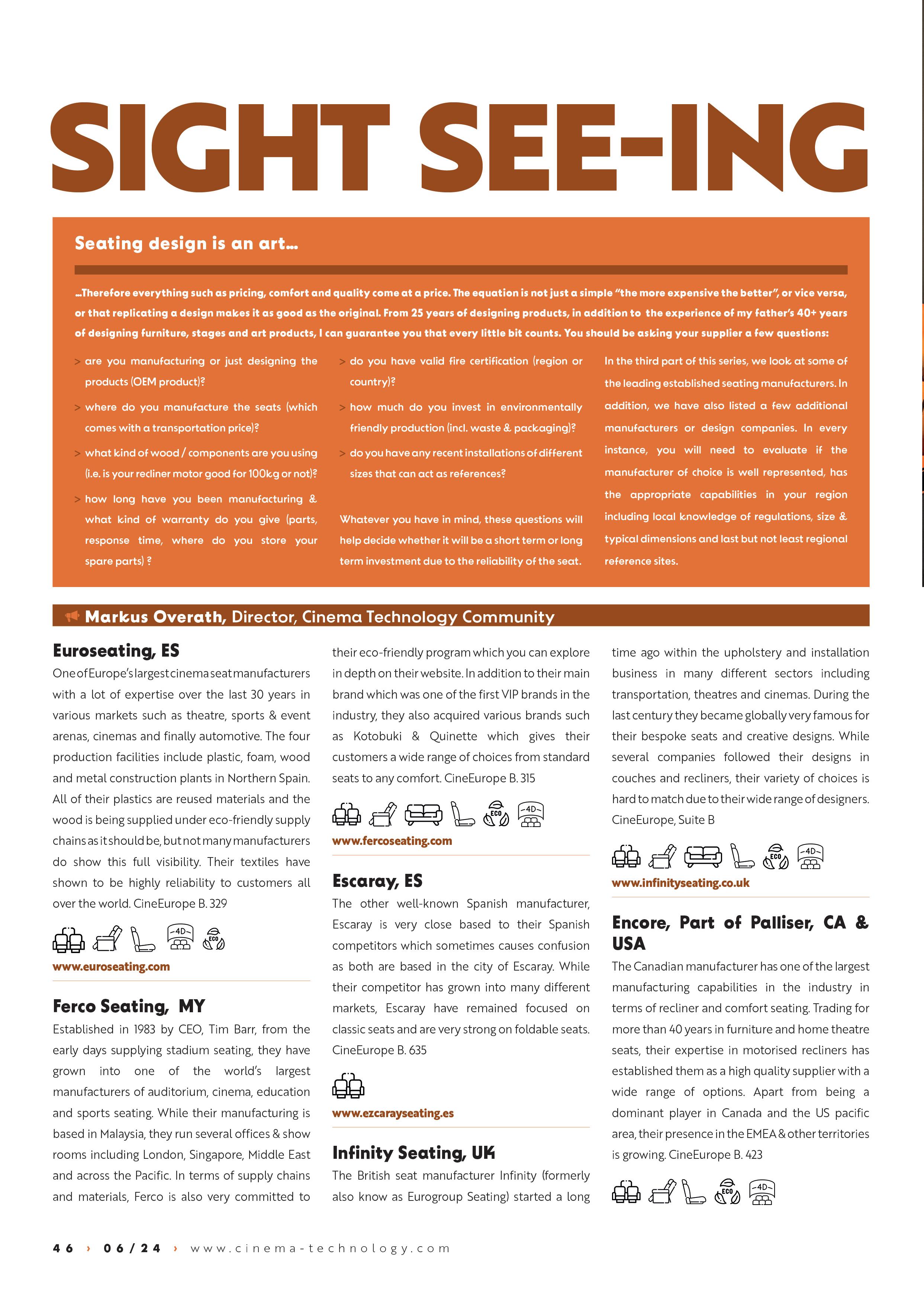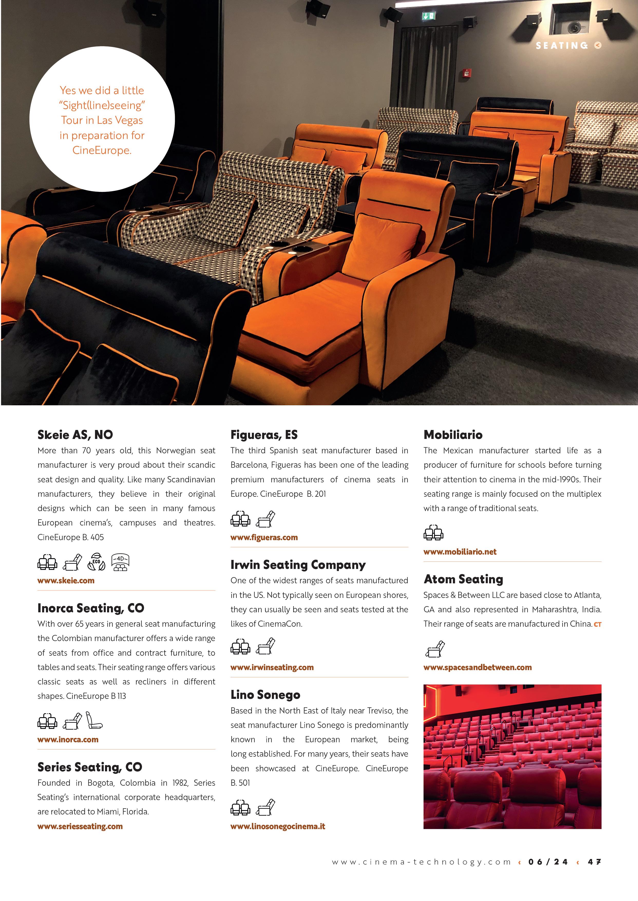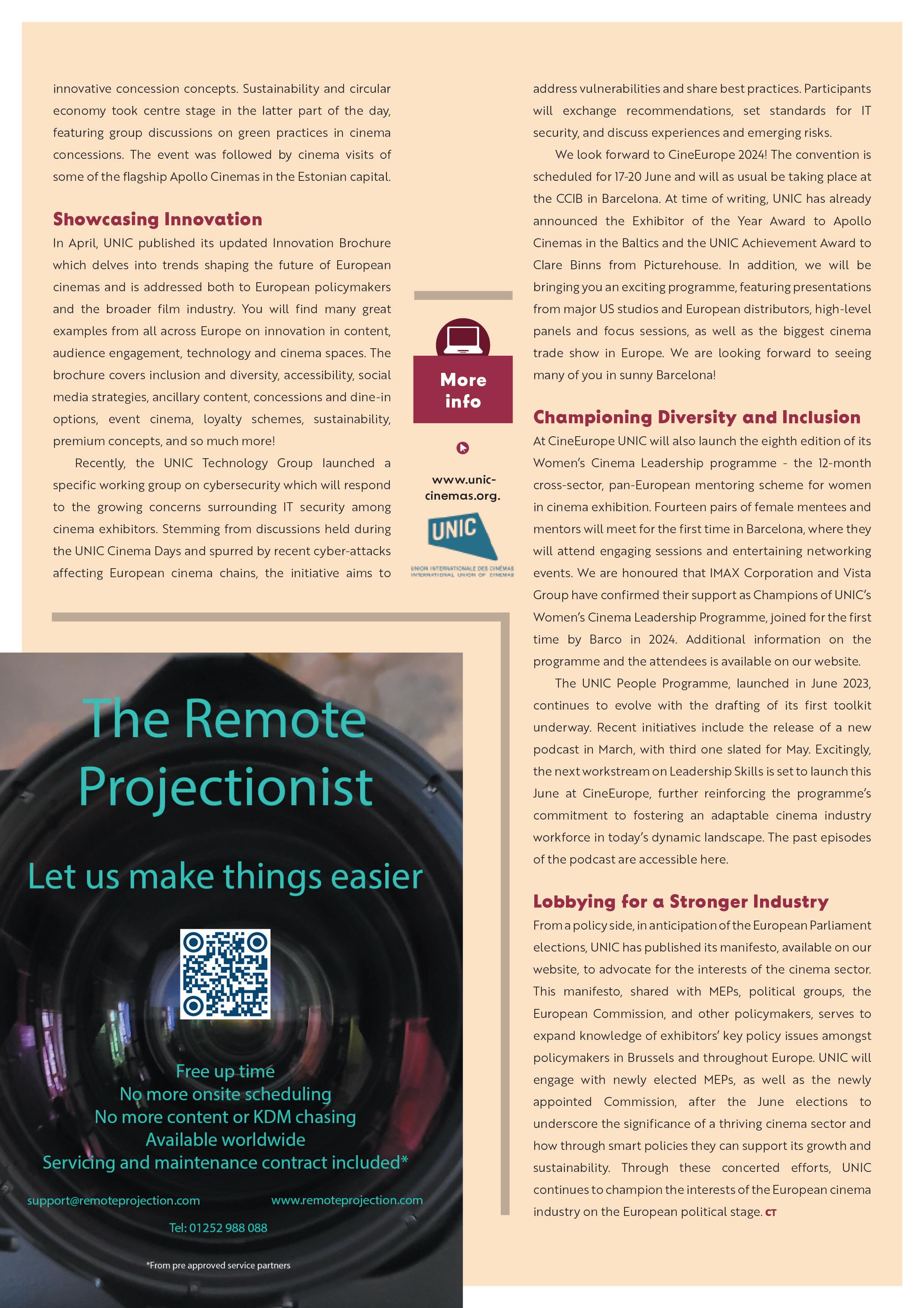 As always, the CTC and CTM team will be at CineEurope in force, so make sure you look out for our team sporting their CTC pin badges or you can set up a meeting by emailing cineeurope@ cinema-technology.com. And as always, if you know of any interesting stories for future editions, do get in touch with our Commissioning Editor, Peter Knight, and we’d be delighted to cover them: peter.knight@cinematechnology.com.