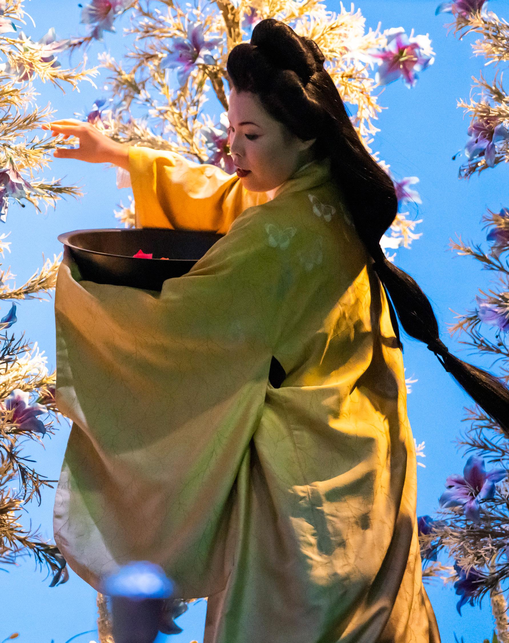 «Kjærligheten kan ikke drepe – den gir nytt liv.» Dette er ordene den amerikanske sjøoffiseren Pinkerton sier til den unge geishaen CioCio-San en stjerneklar natt i Nagasaki. Men begge vil snart forstå at ubetenk somme ord og løfter kan få fatale konsekvenser. Giacomo Puccinis opera er både fortryllende og hjerteskjæren de, med et partitur som inkluderer Butterflys arie «Un bel dì vedremo» («En vakker dag») og «Nynnekoret». Moshe Leiser og Patrice Cauriers utsøkte produksjon henter sin inspirasjon fra europeiske bilder av Japan på 1800-tallet.