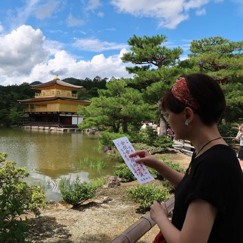 旅程中,口吃女生因緣際會之下拾到一隻布鞋,因而夢見青 年和尚邀請她前往金閣寺。到底前往金閣寺這回事,是一塊 壓垮她的肩膀的石頭?還是一尊度一切苦厄的菩薩石像?