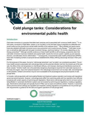 This article was reprinted from the National Collaborating Centre for Environmental Health, and a copy can be found online here: https://ncceh.ca/sites/default/files/2024-04/Cold%20plunge% 20tanks%20final%20EN.pdf