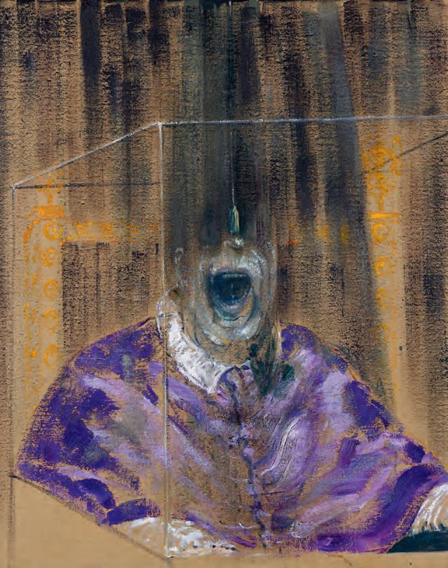 Baconís art is like nothing else. His contorted, elongated gures, screaming popes, and grotesque, eshlike bodies seem to writhe and twist on the canvas, as if