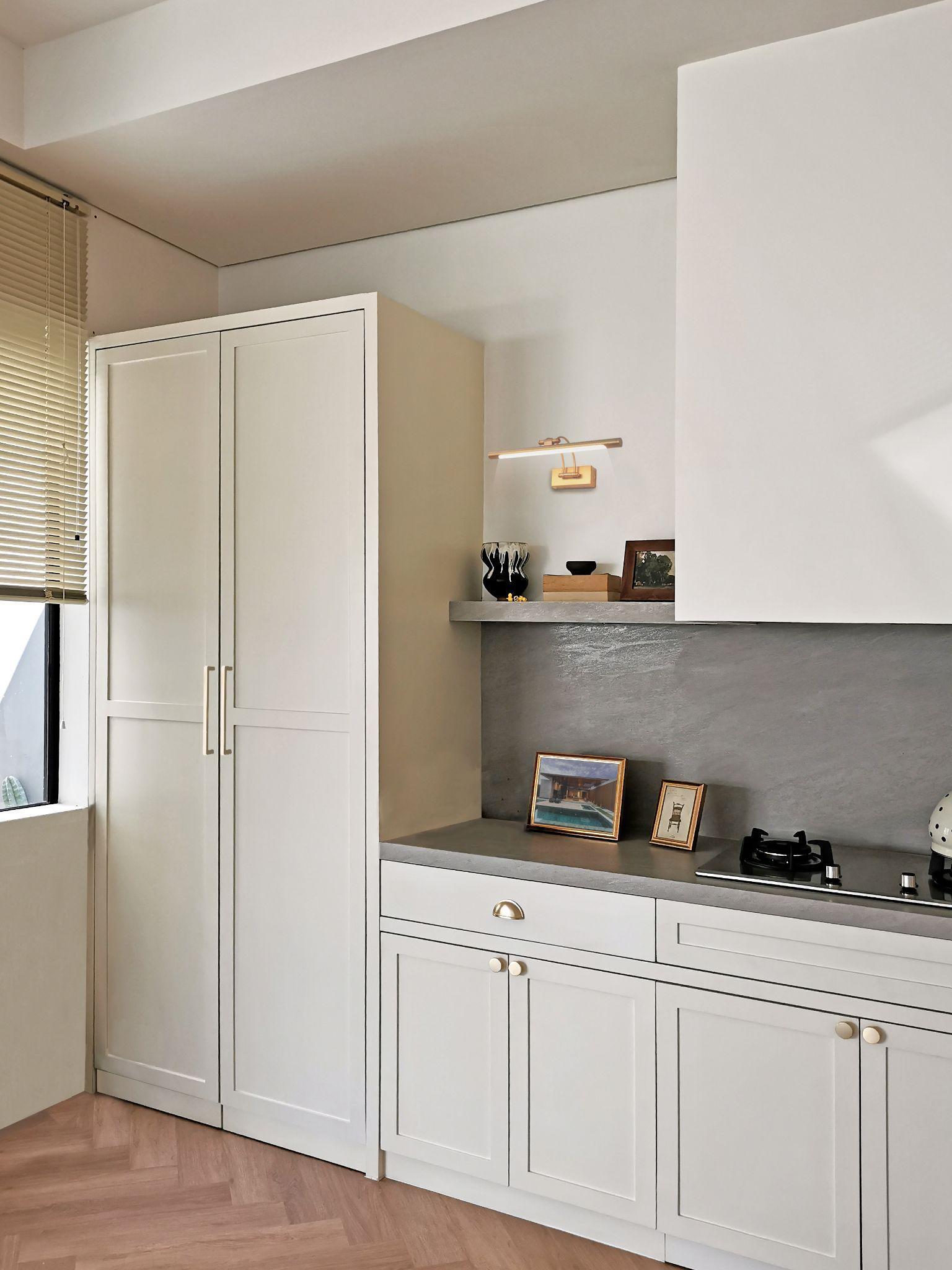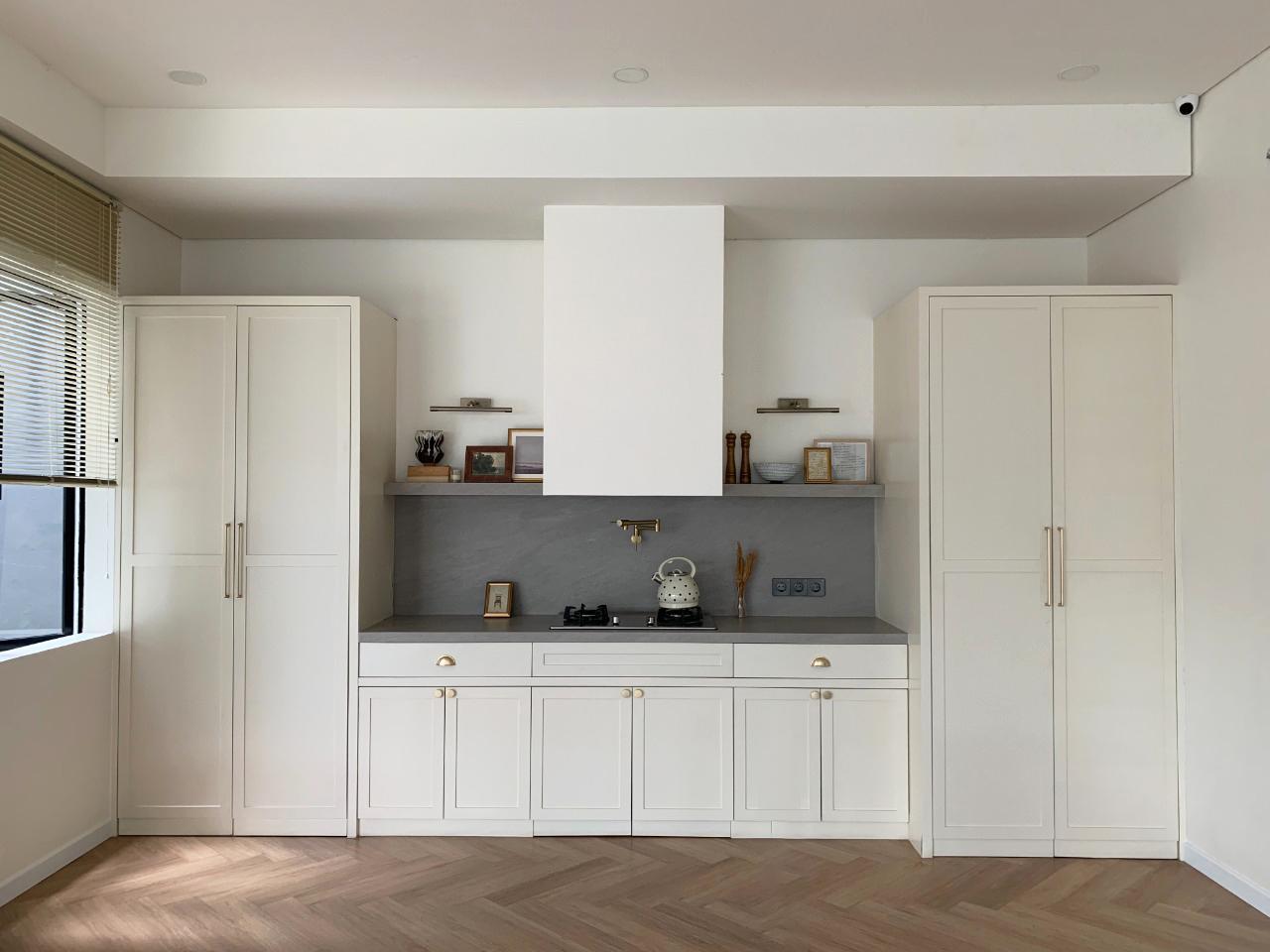 One of the projects that are also quite challenging. The kitchen set in the apartment was remodeled, and some materials were reused.