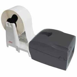 Dispensador universal para rollo externo (aplicable para diferentes marcas y módelos de impresoras de escritorio). Se acopla directamente en las impresoras de escritorio, soporta rollos de 3” de diámetro de tuco.