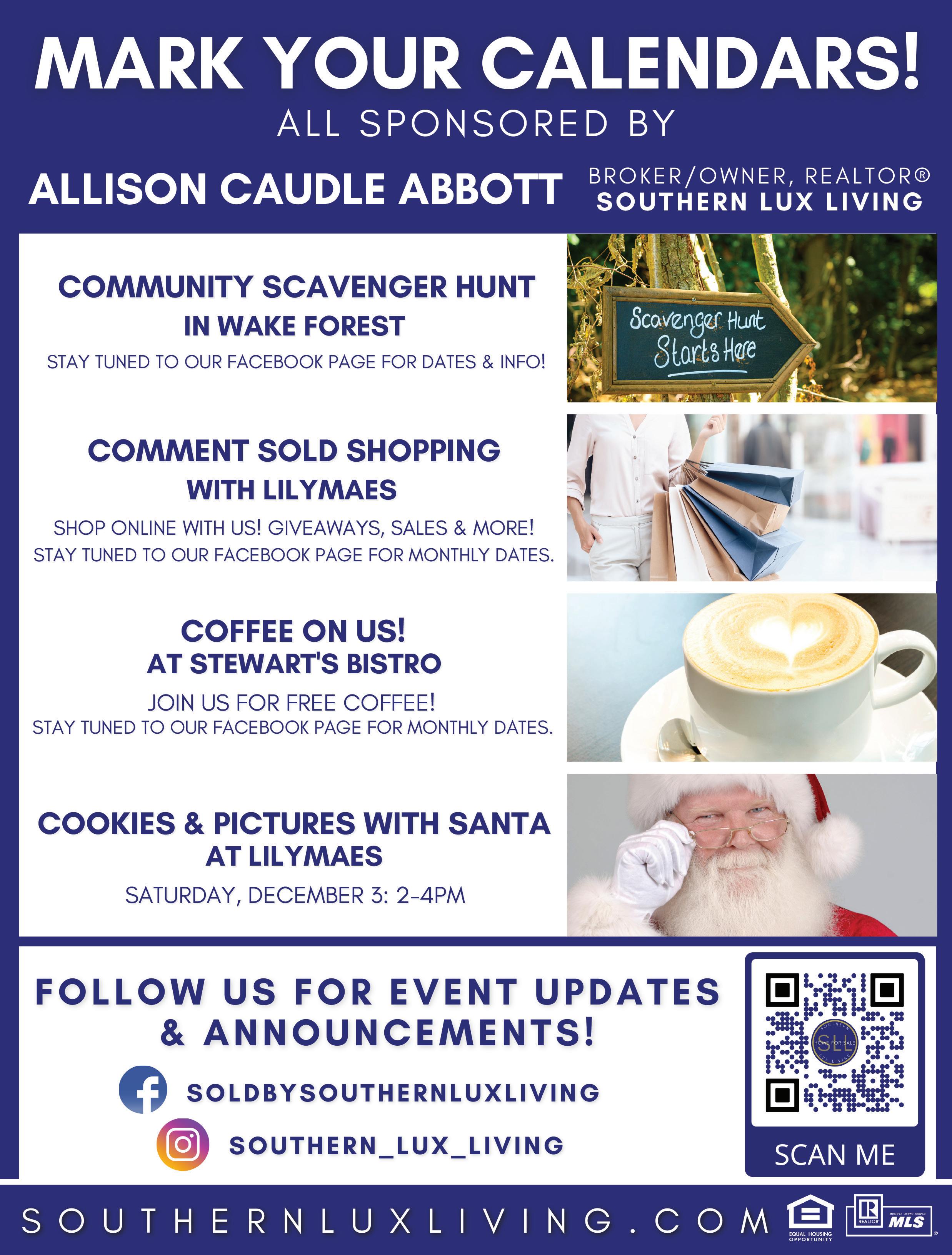 – Learn about our neighboring towns of Chapel Hill and Carrboro, and the charm that awaits should you need an easy nearby escape from the upcoming holiday hustle and bustle;