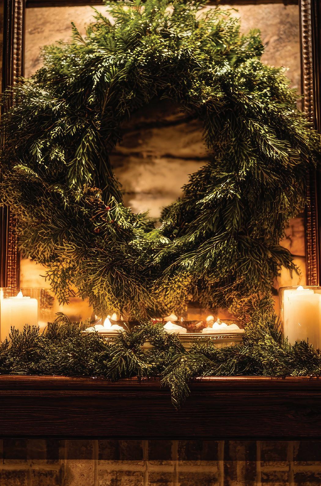 Accessories carry a lot of weight. Mixing modern and vintage accents, like timeless holiday books displayed on a table or shelf, helps tie everything together. “Groupings of vintage and modern pieces in odd numbers make a more visually appealing display,” she notes. Collections shine even brighter when they’re mingled with sentimental items and family photos that tell your story.