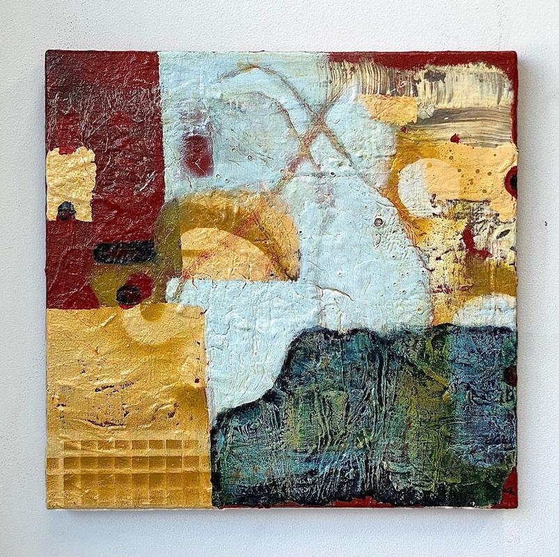 “My work is primarily driven by my love of color and abstract organic texture. I’m endlessly intrigued while observing color relationships and the ways in which color can affect one’s mood and wellbeing. I like to allow the paint and random pattern to prompt and propel me throughout the compositional development of my work, intermingling chance and deliberate mark-making sporadically throughout the process while using landscapes, seascapes and environmental concerns as inspiration and as a central theme.”