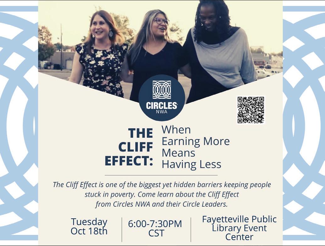 Circles NWA (Fayetteville, Arkansas) hosted an in-person learning event titled “The Cliff Effect: When Earning More Means Having Less.” Panelists at the livestreamed discussion included Circle Leaders who were part of the first cohort of the Circles NWA program and have personally experienced the cliff effect. Educator, performer, fashion designer,