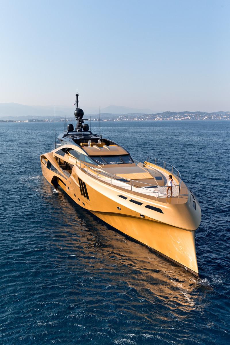 Breaking boundaries as the world’s first all-carbon superyacht, the 49 5m KHALILAH is turning heads with its bold gold hull Delivering luxury and performance, offering five spacious cabins for up to 11 guests
