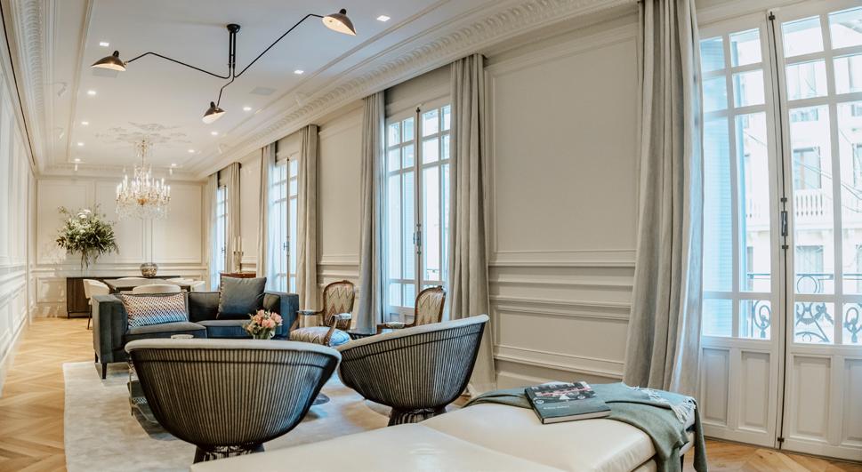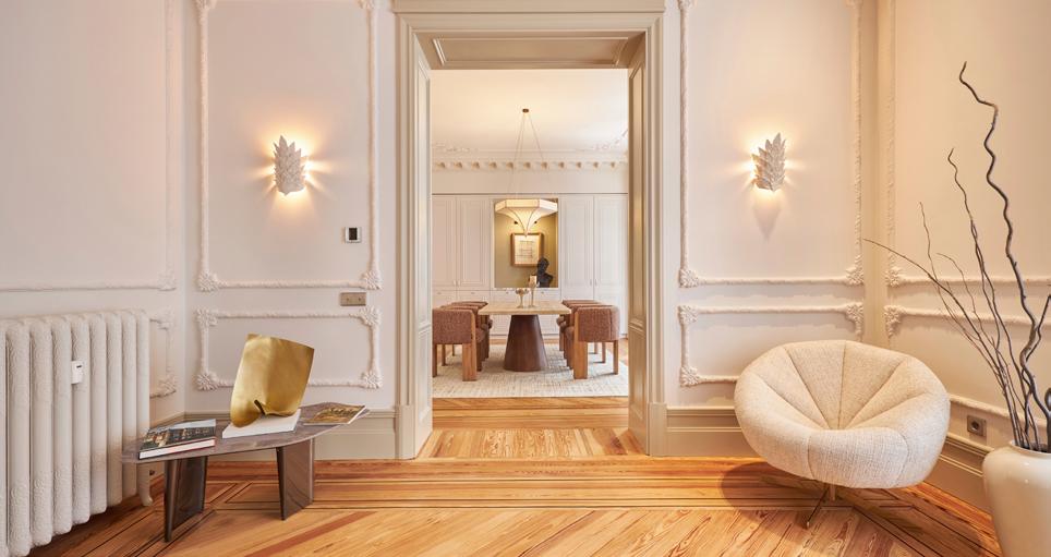 Nestled in a highly elegant, early 20th-century building, this apartment has been lavishly renovated. Herringbone parquet underpins spacious living areas with soft colours, understated finishes, intricate wall detailing and expansive windows. The surrounding Salamanca neighbourhood itself boasts some of Madrid’s most prestigious gastronomic, retail and cultural destinations including the Lázaro Galdiano Museum, the National Archaeological Museum, Platea Madrid and more.