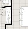De meubels en keukeninrichting louter ter informatie, onder voorbehoud van de uitvoeringsplannen en detailplan keuken. De terrasafwerking ligt lager dan de binnenvloerafwerking. De hoogte kan afwijken in functie van de gekozen vloerafwerking.
