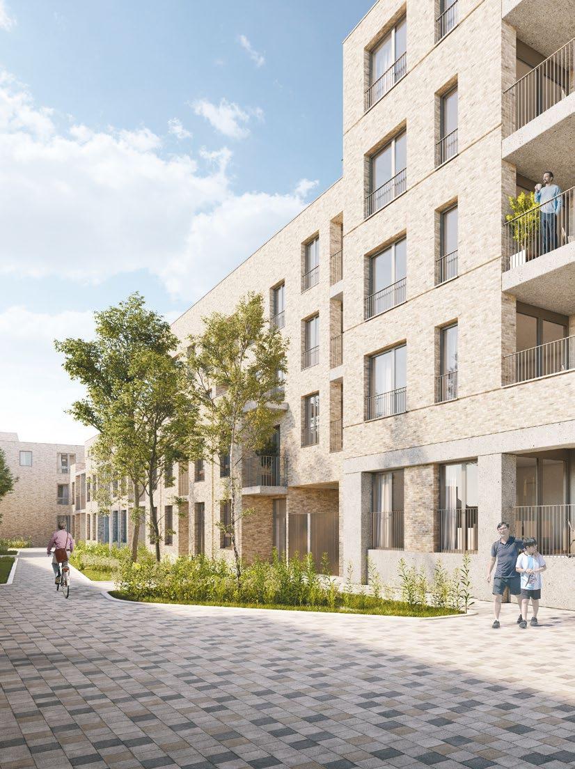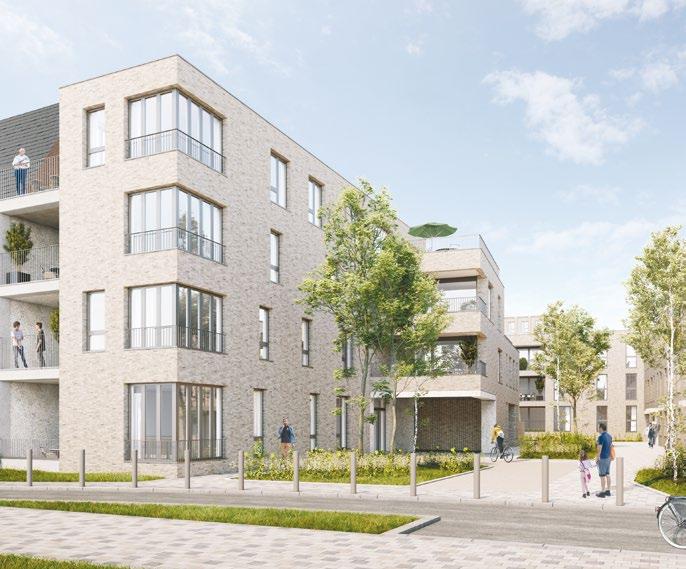 Met de laatste fase stellen we 14 nieuwe woningen en 12 appartementen voor langs de groene, verkeersvrije leefstraat die de verbinding maakt tussen de vaart en het nieuwe park. Een gloednieuw adres: een plaats om te wonen, een nieuwe verbinding en een plek om gezellig samen te zijn.