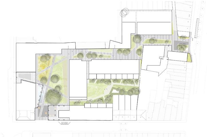 ruigte die biodiversiteit stimuleren. Beplantte zones met een mix van siergrassen, vaste planten en groenblijvende heesters zorgen voor een sterk gelaagd beeld dat in elk seizoen aantrekkelijk is. Tot slot voorzien we ook een waterelement aan het Désiré-gebouw, dat met een deel van zijn sokkel in het water zal staan.”
