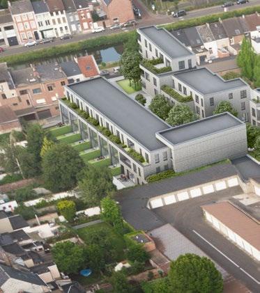 De appartementen in Tres kijken uit over het water en de Vaartdijk. Het gebouw vormt een open en groen begin van de leefstraat. Hier vinden we zes lichtrijke hoekappartementen terug met 2 of 3 slaapkamers en met grote terrassen uitkijkend over het water en het groen.