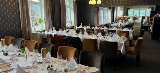 Vi sørger for oppdekking i eget lokale med hvite duker, lysestaker og blomster på bordene. Se unikehoteller.no for priser og bestilling.