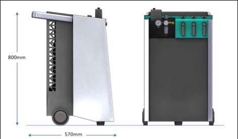 Arriba se puede observar el esquema de diseño para el trabajo a campo para elaboración de mapeo. También la ePlasma Nose se puede quitar del “carro escritorio” y trabajar con la unidad sobre un escritorio o en laboratorio, en estos casos si hubiera suministro normal de gas inerte nitrógeno para asistir al instrumento, se podrá prescindir del generador de nitrógeno móvil.