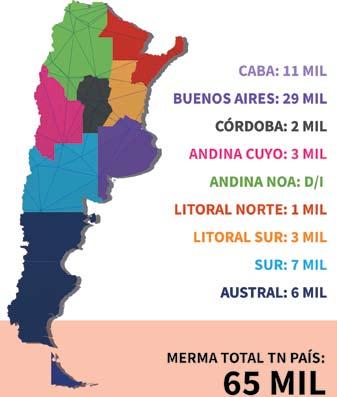 Las regiones geográficas identificadas con la mayor proporción de impacto económico en la merma detectada son: Buenos Aires, CABA, Sur y Austral, en ese orden.